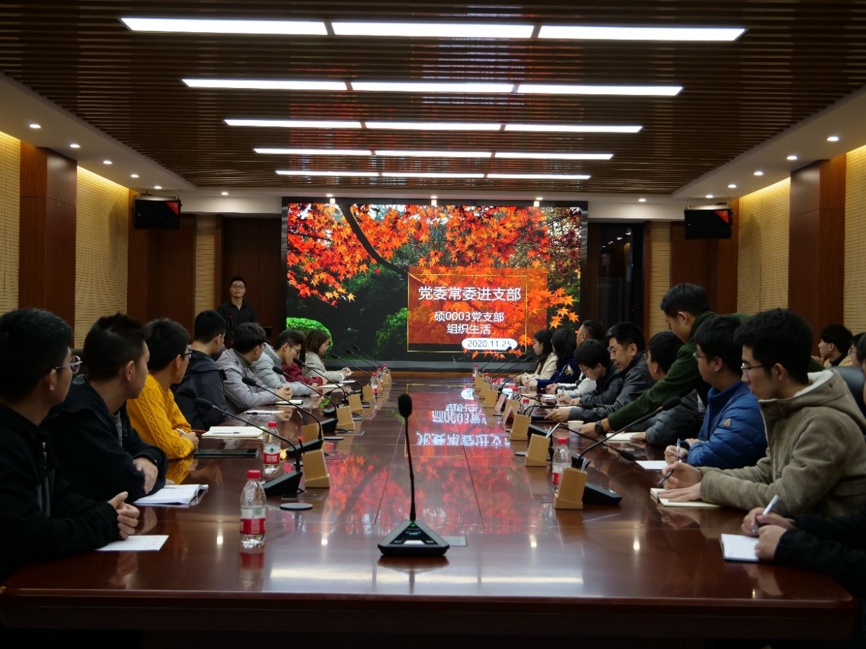 硕0003党支部书记李希晨首先后介绍了支部的组织架构以及开展组织生活情况、高端装备研究院建设背景与本专业学科现状。讲述高端装备研究院的建设是交大积极响应制造强国、科技创新2030、军民融合等国家战略的成果,同时介绍交大的机械学科在该领域的领先地位。令大家深感身处的环境之优,肩上的责任之重。
