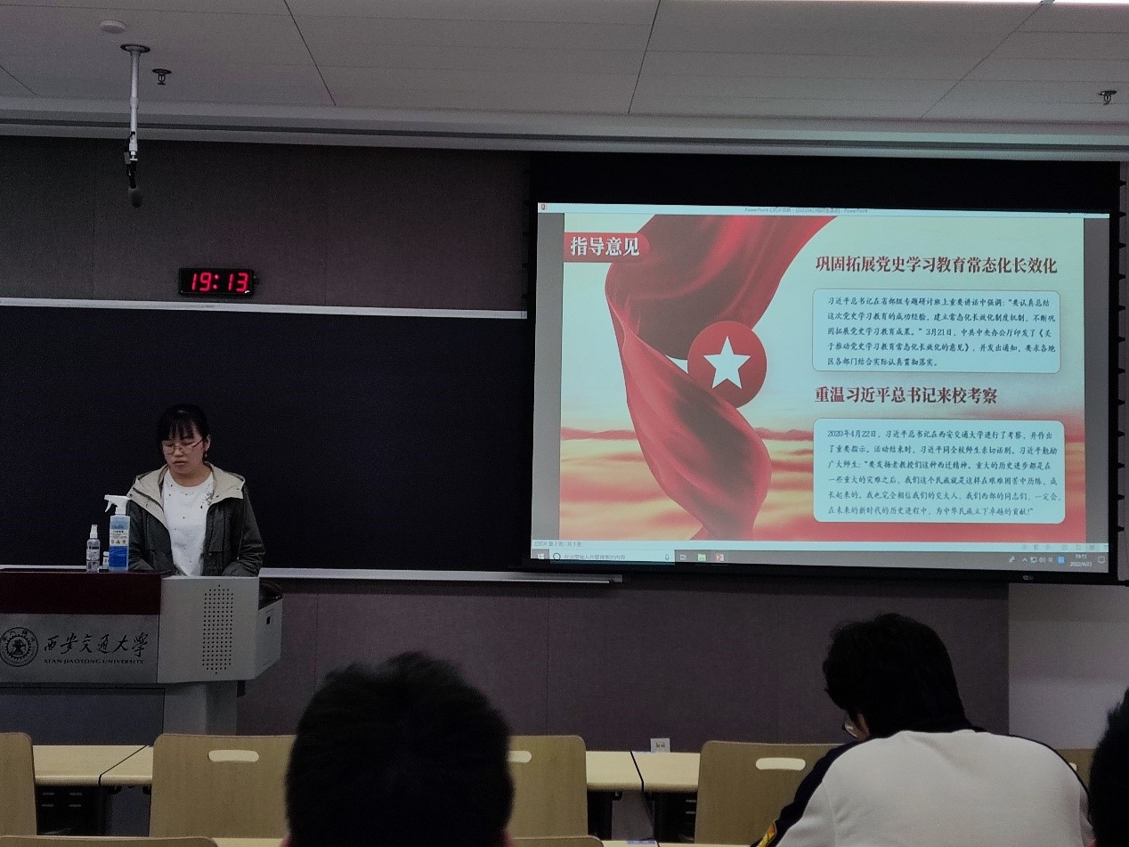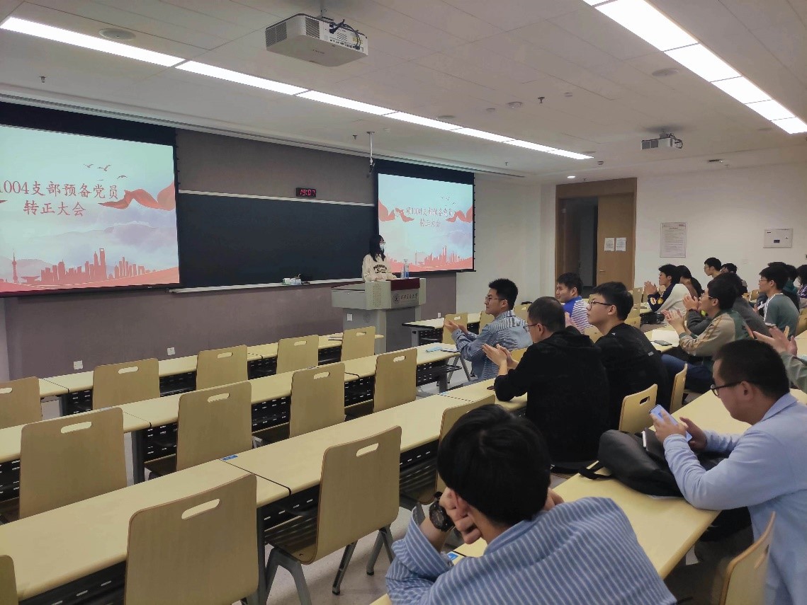 本次大会有两个主要事项。第一项内容为支部预备党员转正大会。由刘桂蕾书记介绍和主持大会的各项事宜及流程,宣读本次会议的预备党员转正人员名单。随后,申请转正的池欣芸同志汇报了自己在预备期内的表现,向党组织汇报自己的进步与提升,总结缺点与不足,同时表示不忘初心跟党走的决心,立志在今后学习工作中严于律己,努力提升。
