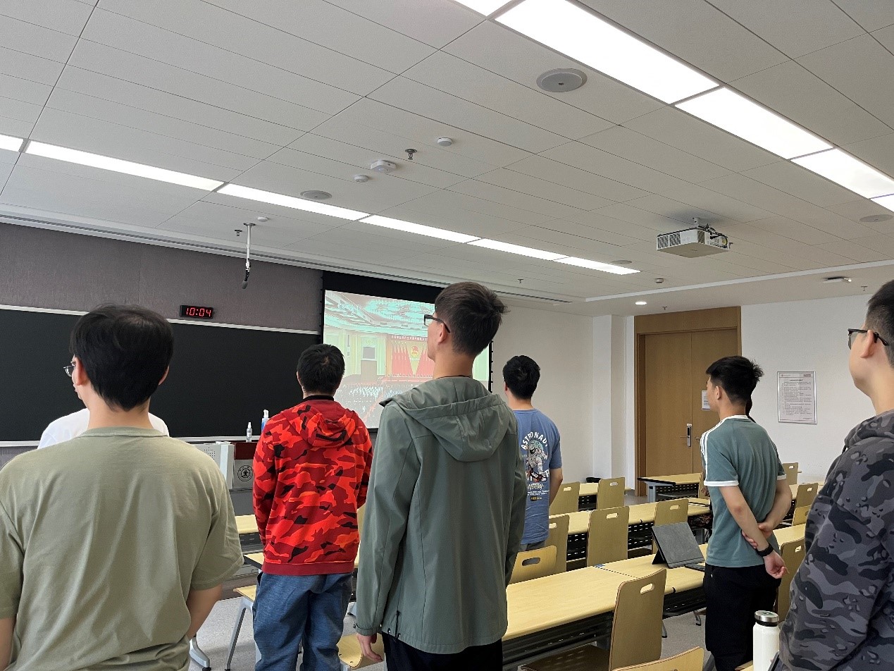 2022年5月10日,硕1004党支部和团支部共聚一堂,学习习近平总书记建团100周年重要讲话,硕1004党支部书记刘桂蕾同志于直播开始前说明党员、团员学习习近平总书记讲话精神的重要意义,同时对党员同志参与此次学习提出了高度表扬,为团员同志们做出了极好的表率作用。学习会于国歌响起时大家的全体起立致意齐唱国歌拉开序幕,各党员、团员青年专心致志,深入思考。习近平总书记讲话结束后,各党员、团员积极发表自己的学习感悟,气氛热烈。