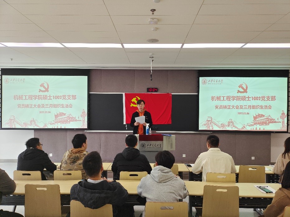 为了进一步健全和完善支部组织建设,增强支部生机与活力,2022年3月6日,中共西安交通大学米兰网页版硕1002党支部于力行楼2-6004召开支部预备党员转正大会暨三月组织生活会。大会分别由支部书记雷杨浩同志及组织委员蒋志煨同志主持,本支部正式党员、预备党员参与此次会议。
