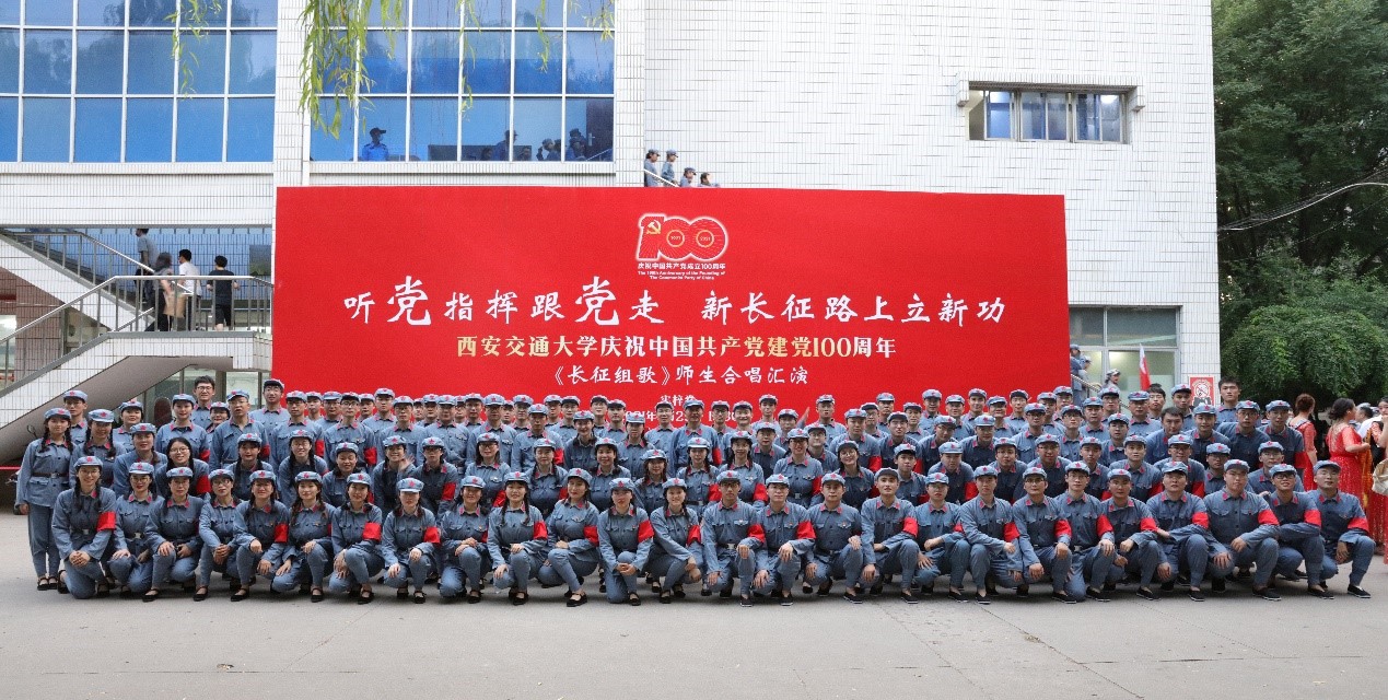 为庆祝建党百年华诞,重温党的光辉历史,在“七一”前夕,西安交通大学举办了主题为《听党指挥跟党走,新长征路上立新功》的红色经典音乐史诗《长征组歌》合唱演出。机械学院师生负责演出其中的第六章《过雪山草地》,用歌声带大家重温漫漫长征路,讲述红军过雪山草地艰难困苦的情景,共同体会红军不畏艰难、豪迈乐观的英雄气概和钢铁意志。