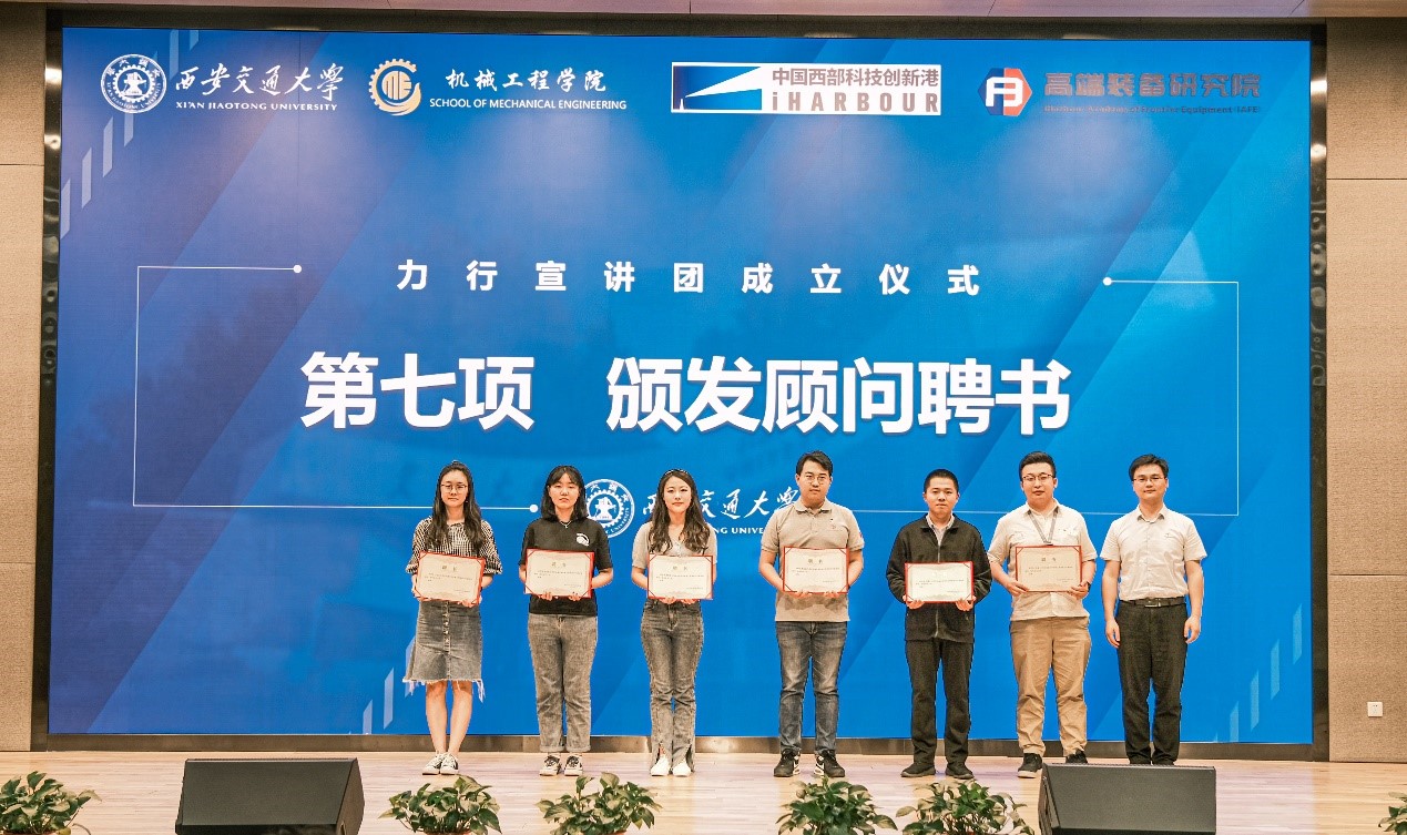 力行宣讲团,取义于校训“精勤求学、敦笃励志、果毅力行、忠恕任事”。“力行”一指竭力而行,二指努力实践,这与学院重实践、求创新的育人特色相契合。力行宣讲团的成立对推动机械学院乃至学校的文化传播、思想教育、价值引领有着重要的意义。宣讲团队涵盖学院领导、青年教师、机械学生三个群体共27名成员,定会秉持着“听党指挥跟党走”的西迁精神精髓,以学院师生为受众主体,外延全校,并向全社会辐射,将深入党史学习教育、学院历史沿革、学院建设成果和动向、研究领域前沿技术、相关政策和战略部署解读、交流学习工作经验、分享生活经历等作为宣讲主题,奋发进取,锐意创新,着力成为学院党史教育的新平台和文化建设的新载体,传递出百年机械的最强音。