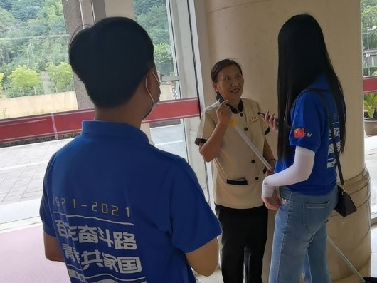 在活动间隙,“星火燎原”实践队成员对敬老院员工进行了采访,感受到了敬老院对老兵们无微不至的照顾。队员了解到,为保证老兵们的健康,敬老院对工作人员以及外来访客的卫生条件有很高要求,对一日三餐也都有所控制,“每天的饮食都很营养规律,为了控制糖分摄入,每天的水果供应也都会限量”,工作人员如是说。